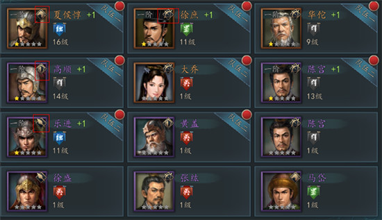 游戏中的武将是可以通过收集副本中掉落的材料来进行升阶强化的,初始武将为0阶。当玩家拥有足够升星的素材即可针对单个武将进行升星,每升一星需要消耗6种不同的素材,满5星后再次升星可晋升1阶。跟随武将出征的士兵等级和数量都会受到武将升阶情况的影响