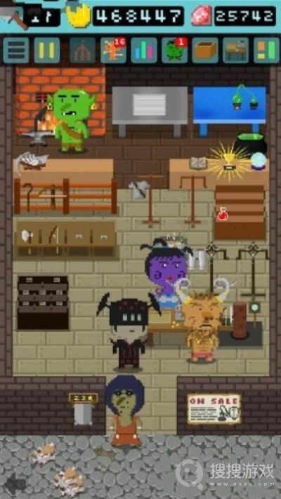 哥布林的道具屋是一款玩法新颖有趣的模拟经营类游戏,游戏中玩家需要经营自己的道具装备点,贩卖各种武器给客人,这些客人都是造型很奇葩的种族,然后召集这些顾客去对付人类