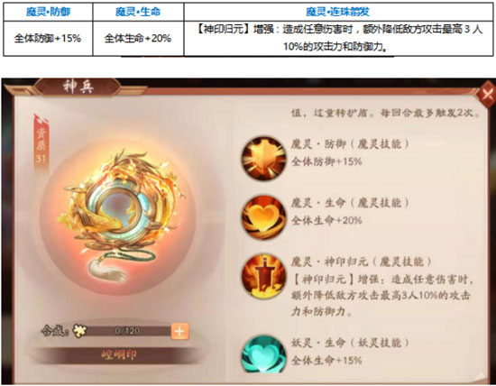 因为崆峒印所带来的增益与效果种类繁多,关于技能的讲解与描述,小编担心有些玩家还是无法很直观且彻底的去了解新神兵,所以做出如下表格,希望可以帮助到大家!