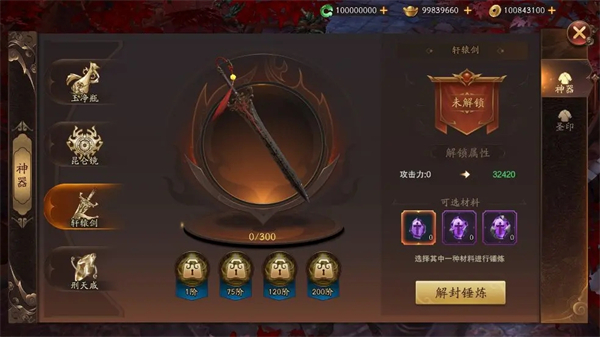 神器激活前,需要消耗材料解封。神器锤炼需要消耗固定的材料,每个神器所消耗的材料不一致。神器锤炼条满时,神器将会升阶。