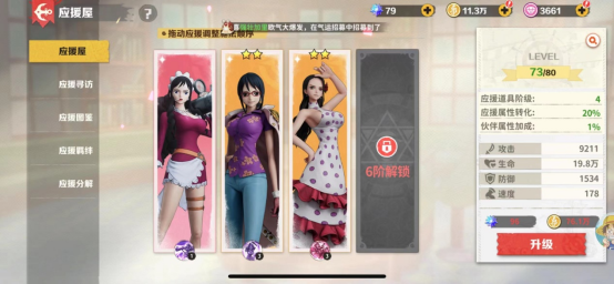 可以用应援星光提升等级解锁更多的属性和上阵位置。