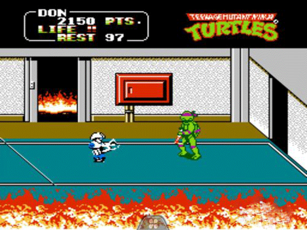 4、进入游戏后,你会发现所有的游戏操作都和红白机上的相同;这对于那些熟悉忍者神龟系列的玩家来说是一个好消息,因为他们可以很快上手并享受游戏的乐趣;