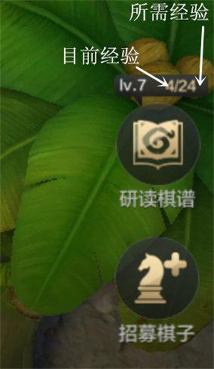 (2)研读棋谱就是升级阵上可上棋子数量。Lv:76/24.代表是当前棋谱是7级,6是目前已有的经验,24代表的是升到下一级的经验。升级棋谱消耗的是金币,1经验等于1金币。棋谱等级越高,刷出高品质的棋子的几率越大,要大致规划下金币的用处。