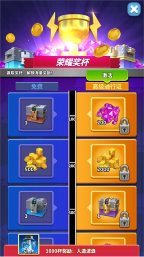 4、【竞技模式】奖杯达到一定数量,赠送传奇炮塔