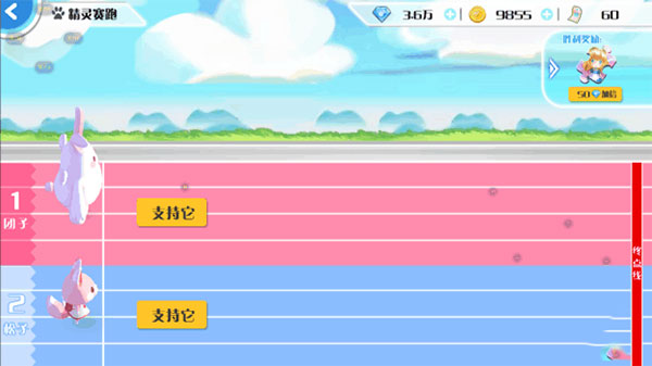 精灵运动会:开始时选择一个你支持的精灵,如果他赢得比赛就能够获得精灵碎片。