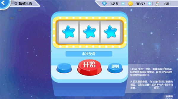 精灵乐透:点击开始按钮机器开始转动,如果停下来时三个图案一致,可以获得精灵碎片。