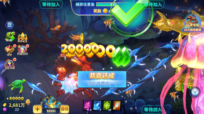 5、每种鱼的价值不同,捕获大鱼虽难,但一旦成功,金币奖励将大幅增加。