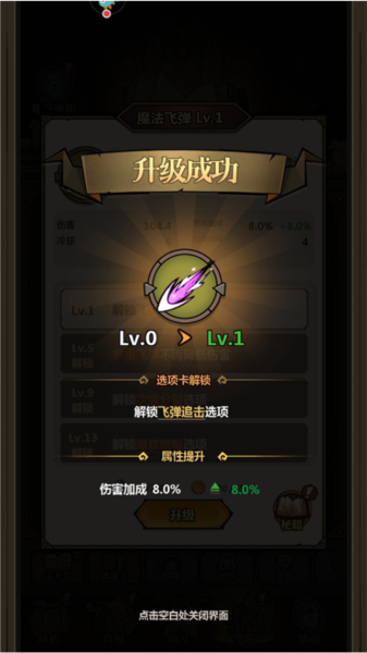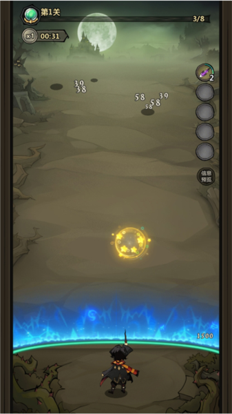 1、进入超强口径游戏后就可以开始塔防冒险了,角色会自动进行防御攻击;