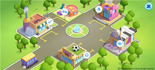 《汤姆猫总动员》游戏中,前院小花园门口有随时待命的小巴士,使用巴士特别货币(可通过日常、或者玩小游戏、购买获得)可搭乘小巴士前往城镇逛街。