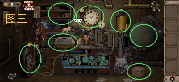 11、进入003室,点击留声机,然后通过点击唱片获得钟表的读数(大为9中为1小为5)。
