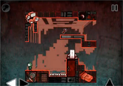 1、玩家在进入游戏后,一直朝着游戏的尽头走去,然后跳上左上角拿到过关钥匙。