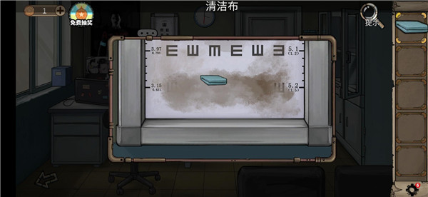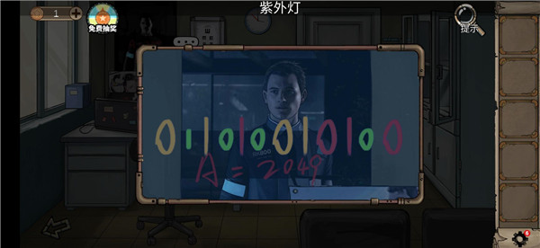 2、来到008号病房 在右边柜子里通过游戏拿到紫外线灯 用紫外线灯照射墙上的海报。