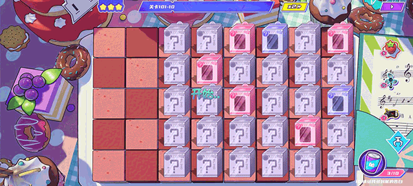 2、个人建议开局可以先把五个粉盒子分别放第一排,五个全放,再从最后一排开始点盒子