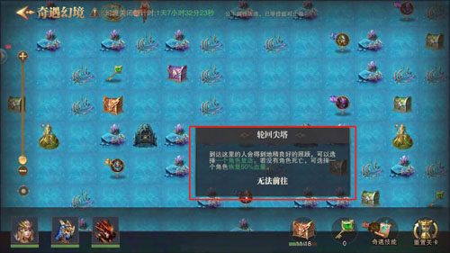 ● 这里需要一步步打BOSS(BOSS包括:5个普通、4守卫、4个精锐以及1个领主和1个恶梦大BOSS),地图中不可以绕路,一旦失败需要从头重新开始。并且在打完一个BOSS之后角色无法自动恢复至满血状态。但地图中有2个地精温泉和2座轮回尖塔专门用来恢复血量和复活一个角色。