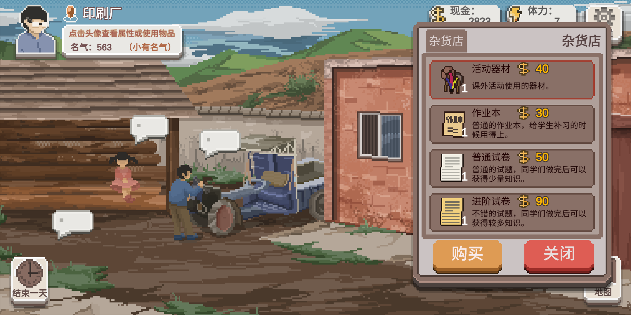 通过事件驱动的教学系统培养学生成长,学生中考成绩直接影响资金获取与学校扩建进度,形成“教学-升级-再培养”的正向循环,玩家需平衡课堂管理、资源分配与长期战略,体验教育事业的成长性与成就感。