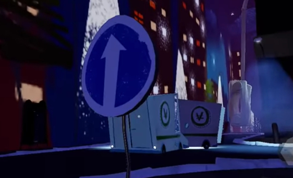 根据提示转动路边的指示牌,让运钞车停下来。运钞车会停在如图的位置,等停下来以后过去拿就行。不止一辆运钞车有,当有钞车路过你身边的时候,如果里面有钱袋子,会有箭头提示。