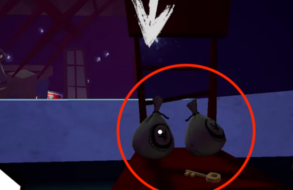 在上一阶段的屋顶,往边上走,可以看见对面有个窗户。里面也有钱袋。直接跳下去,跳下去以后,可以看见一排木质的门,钥匙就是开这个门的。然后利用地上的弹簧床,先跳到旁边上的架子上,再利用架子上的弹簧床跳进屋子里面。如果你跳到木门外面去了,就用钥匙开门进来。进入屋子里面以后找到如图的画,钱袋子就在后面。下来的时候直接从窗户跳下来就行。