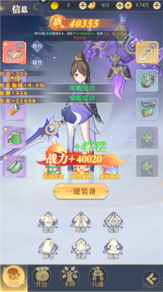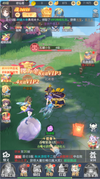 4、提供多流派修仙路径,玩家可选择契合自身风格的修炼方法(如剑修、法术、炼器),快速提升境界,离线挂机亦能稳步飞升。