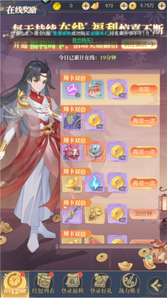 5、当玩家达到在线时长或等级时还有海量资源免费领取