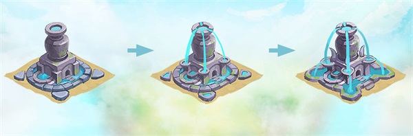通过中心的巨大水瓶凝聚来自云层中的纯洁水汽,并储备其中。通过吸取其中的水元素可以帮助水属性龙提升力量。
