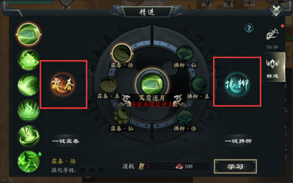 每次强化技能的精进分支之后需要点击对应的精进方向进行实装。单个技能,单个分支,单个效果可以提升三级,可以升三个阶段(悟——真——仙)