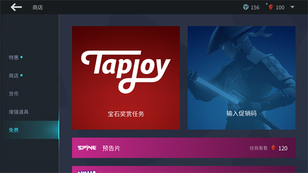2、在商店界面选择最下方的免费,在这里就可以选择输入促销码了。
