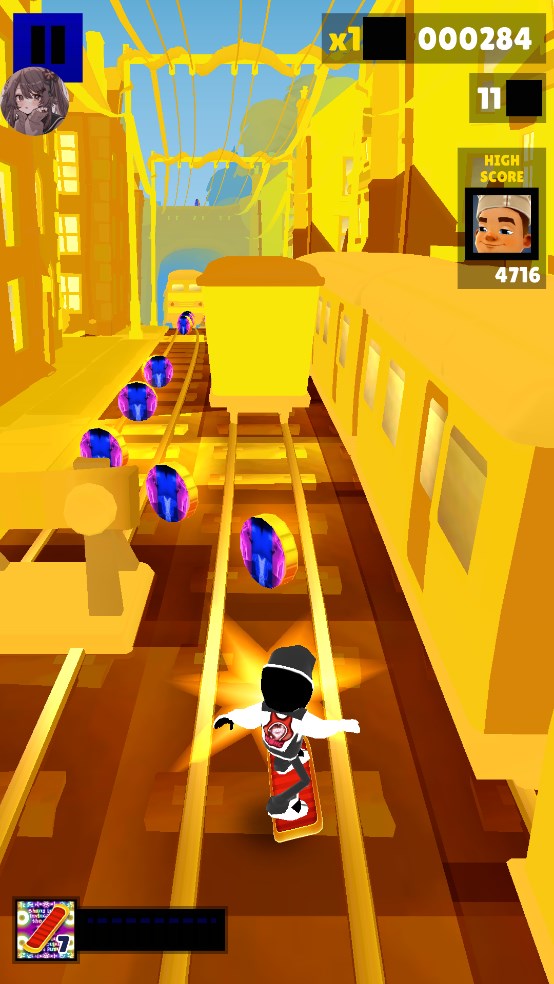 在地铁跑酷中,玩家将会进入各种挑战关卡,其中需要在地铁车厢之间空中飞跃,效果炫目,虽然这些关卡相对比较简短,但难度非常高,需要玩家快速做出反应。