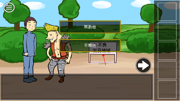 点击左侧学生-选择【不帮他】,然后画面切换至右侧-点击右边的史莱姆-获得【徽章】, 画面切回左侧-对着学生使用道具【徽章】。