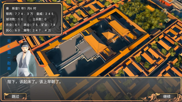 1、进入游戏的第一件事情,就是你的司礼监大总管---赵高喊你起床