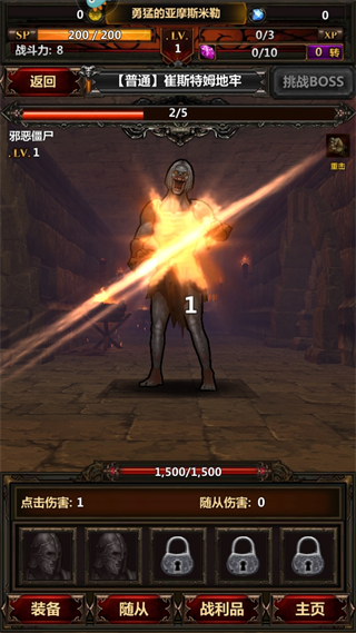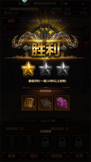 5、快打boos的时候点击返回主页去给角色装备升级