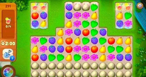 291关虽然整体难度并不高,但其关键难点在于顶部的石头。若不首先消除这些石头,将导致两个水杯无法下落。首要任务是集中精力清除顶部的障碍。还可以尝试通过移动水杯进行消除,利用水杯的位移,从两侧推动其下落。