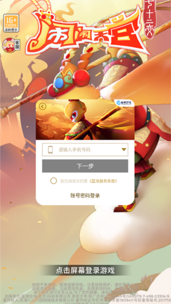 1、在本站下载安装好闹闹天宫后,输入手机号接收验证码登录。