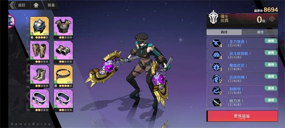 3、金装备带三个羁绊栏且其中有一个为特殊攻击加成(如图),紫装备两个,蓝装备一个,副属性词条栏同理