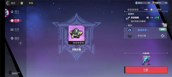 6、好了,重点来了,装备升星不要乱升不要乱升不要乱升,因为是不可以像经验继承一样返还的,分解也不会有,只会打水漂,所以这边建议大伙,蓝装备不要升星,紫装备看自己的推关情况,最多拉到两星,解锁紫装备的第二个羁绊栏加成就行哈,不要在往上拉了,有金装备就拉到四星,解锁第三个羁绊栏就OK啦,至于装备基础数值都是一样的,有金就拉金的星级,副词条反正可以重新洗练,不用担心评分问题