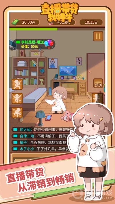 《直播带货我特牛》是一款画风非常可爱的休闲治愈小游戏,游戏融合了现在最火的直播带货元素,玩家将在游戏中成为一名带货主播,并在直播间卖货赚取利润,还可以PK其他主播,非常的真实,来努力赚钱成为大主播吧!