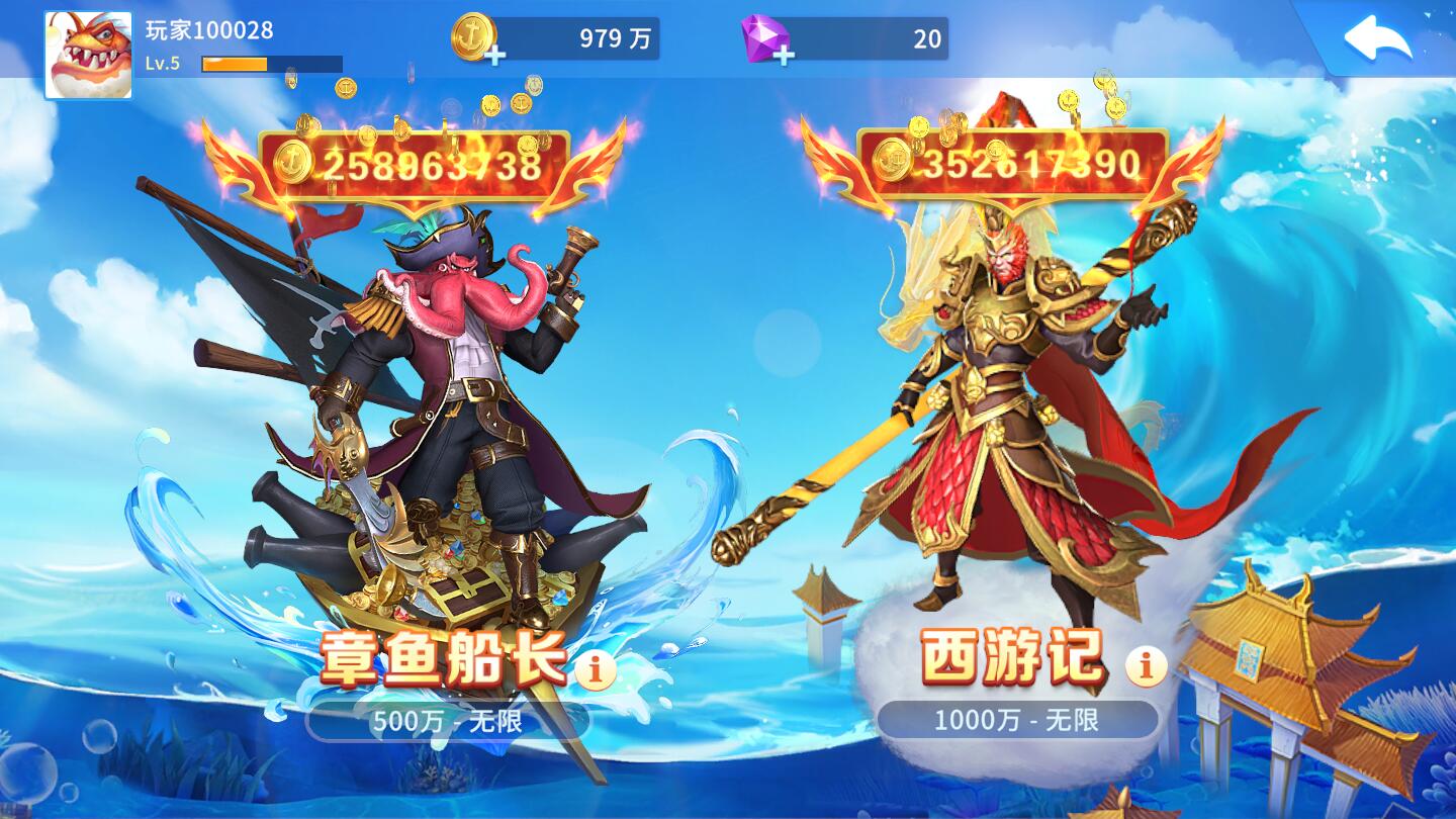 而在西游记中,主要是加官进爵以及西游宝藏玩法为主;在渔场中捕鱼,累计盈利可以参与加官进爵,盈利越多,排名越靠前奖励越丰厚,最高可瓜分西游记大奖池30%的金币奖励;击杀孙悟空、猪八戒、白骨夫人等可获得西、游、记道具,消耗3个道具各一个可开启西游宝藏,随机抽取金币奖励,上不封顶,但如果抽中炸弹蟹的话就会结束本次抽奖,每次开启宝藏所获得的金币数量都将作为神力积分,参与每日神力榜与每周神力榜,每日神力榜取当天单次开启宝藏的最高积分值,每周榜则取每日神力积分最高值之和进行排名。