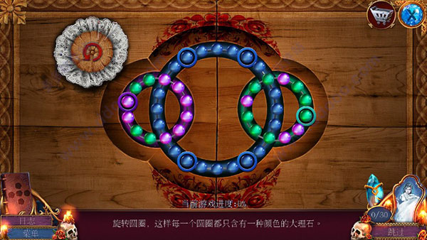 规则就是小圈调整好位置,转动大圈来进行置换红绿玻璃珠。