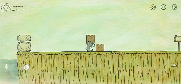 这一关也是同样让毛驴向后拉将箱子抛出后,毛驴再跳过小河,之后再将箱子推到指定位置即可过关。