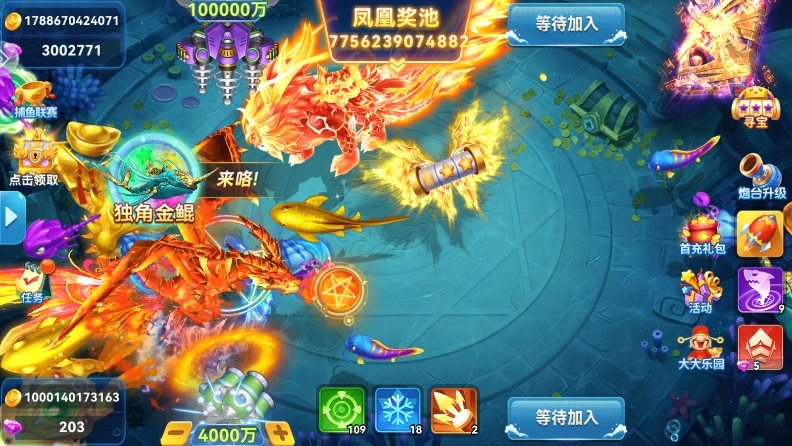 突破传统千炮限制,搭载"万炮齐发"核心玩法,配合精准打击算法与多重暴击特效(如穿透弹/连锁炸),实现单次射击捕获千倍收益,BOSS鱼群全屏炸裂时触发12亿金币瀑布,颠覆捕鱼爽快感。
