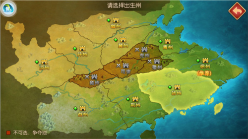 1、进入主公跑跑跑游戏后,选择你的出生州作为发展基地,推荐选择徐州。
