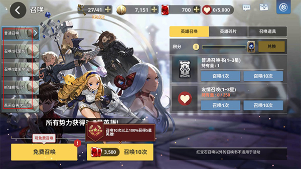 6、游戏内的召唤系统是获取英雄最直接的方式,有多个召唤模块可以选择,当然,游戏内还有丰富的福利活动可以免费领取英雄。
