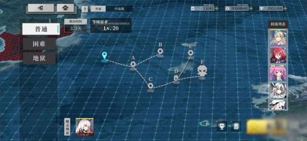 在这个模式中,指挥官需要到多片未知海域进行探索。每片海域战分为“普通”“困难”和“地狱”三种难度,消耗“燃油”便可直接开始探索,只有通关了上一种难度后才能解锁更难的关卡呦。在探索过程中,指挥官除了能搜寻到更多的素材之外,还有概率寻找到失散的舰灵!难度越高的战斗,出产的资源和舰灵等级也就越高,指挥官可根据自身战力情况进行挑战~