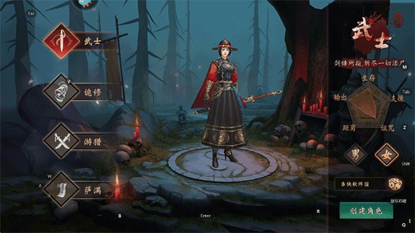 2、游戏中包含四大职业,武士、诡修、游猎、萨满,玩家可选择其一并输入ID以创建角色;