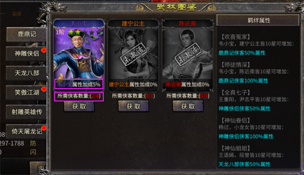 点击图鉴中的获取可以查看该侠客的获取方式