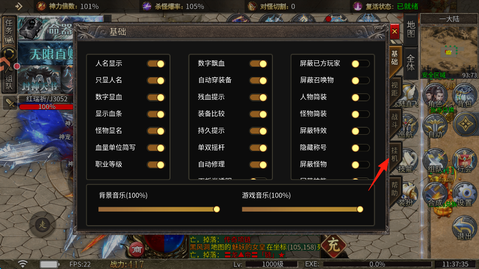 5、点击屏幕右侧的“自动”,这样就开启了挂机功能。