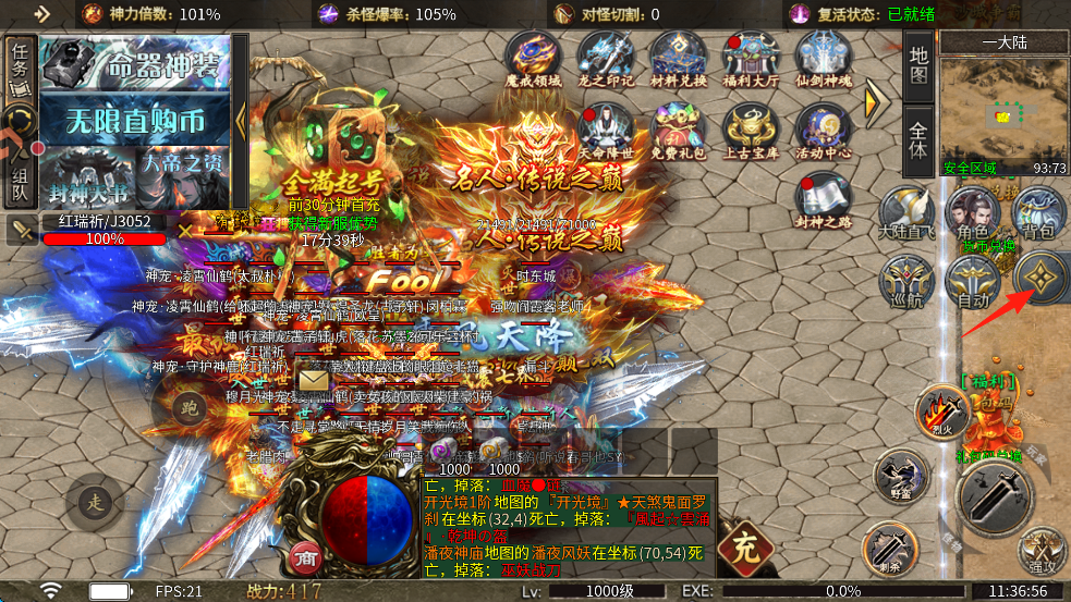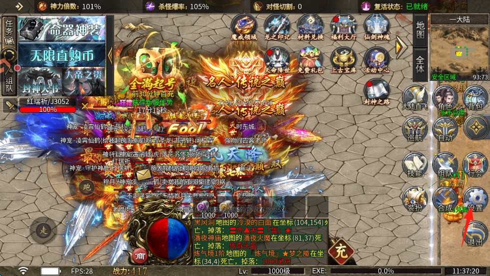 2、挑战龙神宝库,击杀怪物狂掉直购币,不限次数无限刷!积攒直购币可兑换稀有道具、极品装备,资源循环不断,越玩越赚,爽感停不下来;