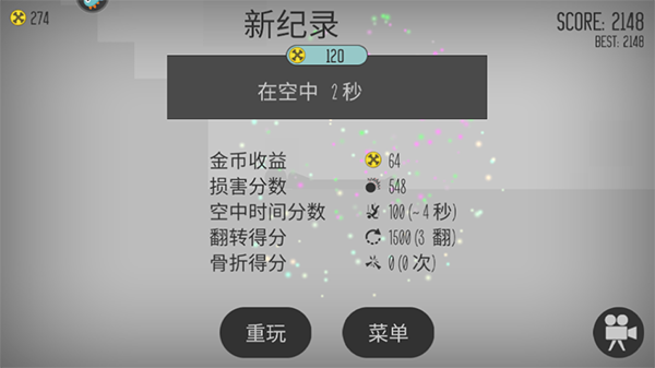 2、游戏的目标就是将火柴人摔死,玩家可以改变火柴人下落的姿势;