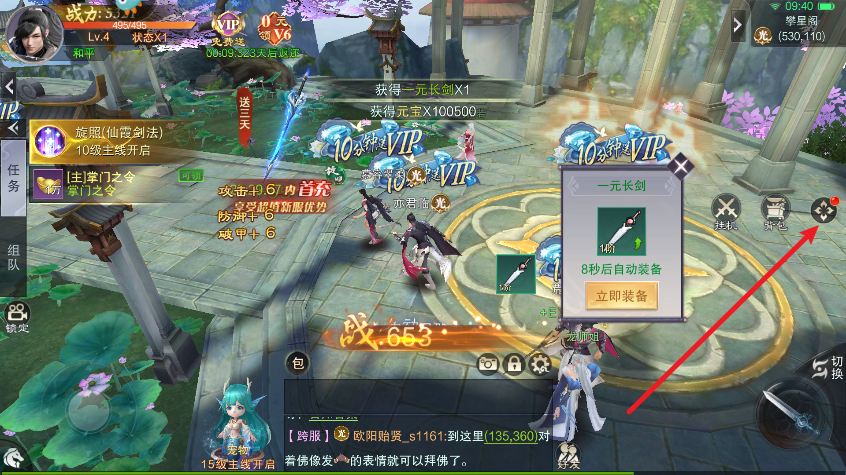2、进入游戏后,系统会自动接收主线任务,你只需点击即可开始自动寻路。