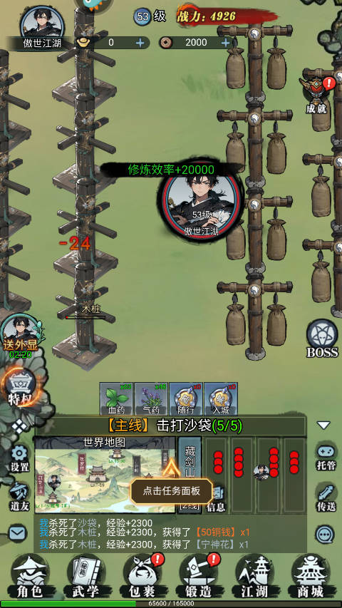 2、游戏中的武学技能记得去激活,这是提升战力闯关必备的。