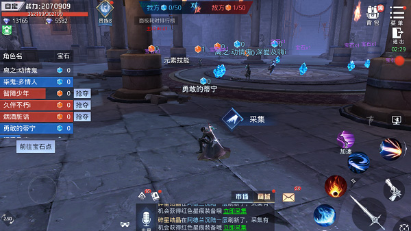 进入活动场景后中部会不定时刷新宝石,拾取后增加阵营宝石,击败拥有宝石的敌人会爆出身上所以宝石,可通过界面左边快速查看队友和敌人的血量和当前拥有宝石的数量,点击旁边的“抢夺”即可自动追杀该玩家!